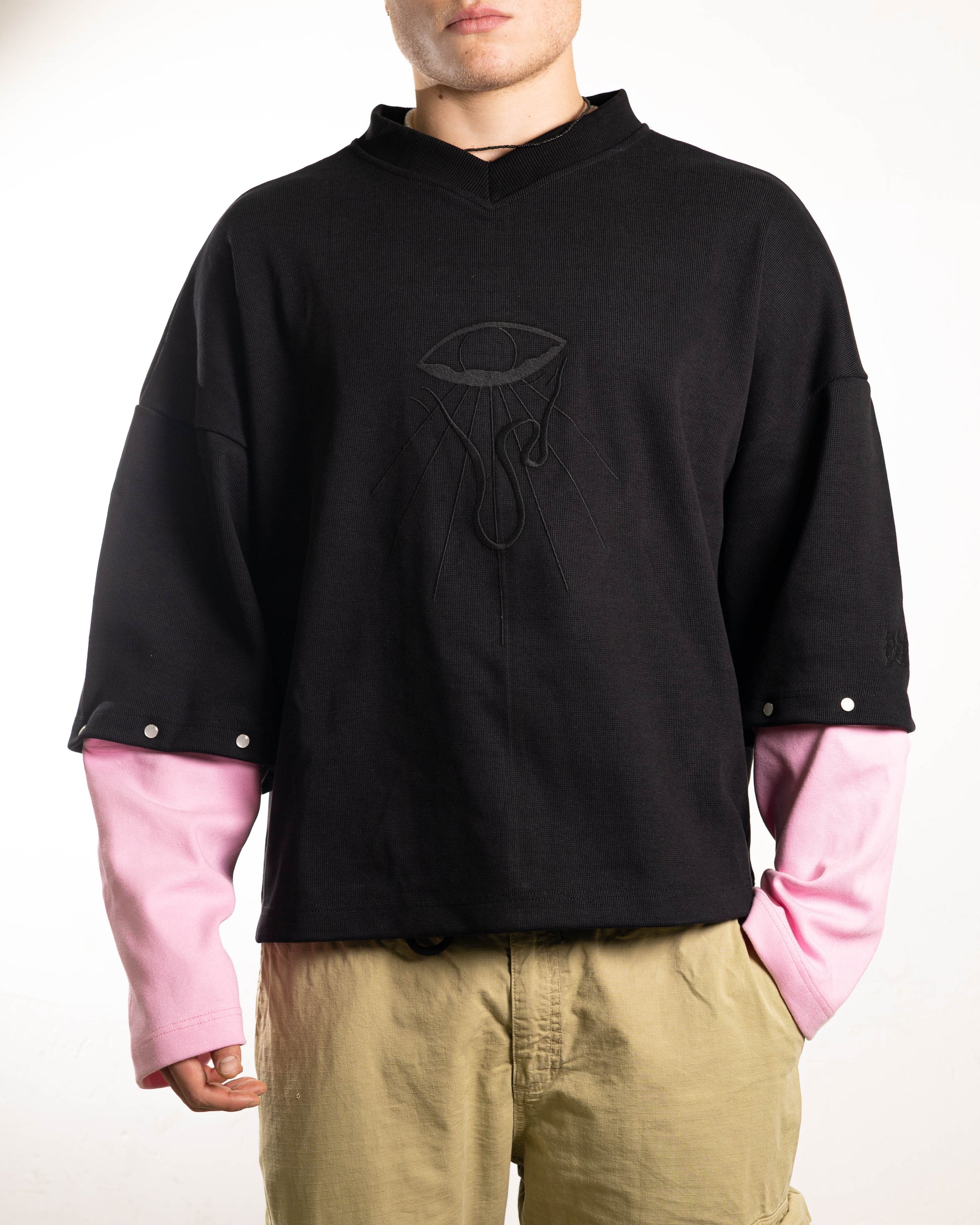 Il suo punto di forza è il design modulare: le maniche possono essere staccate e sostituite con altre di colore diverso grazie a eleganti bottoni in madreperla. Con l’acquisto di una singola Morph Longsleeve riceverai due paia di maniche: una nera e una rosa, per cambiare look ogni volta che vuoi. Un solo capo, molte possibilità — adattalo al tuo umore, al momento o allo stile del giorno.